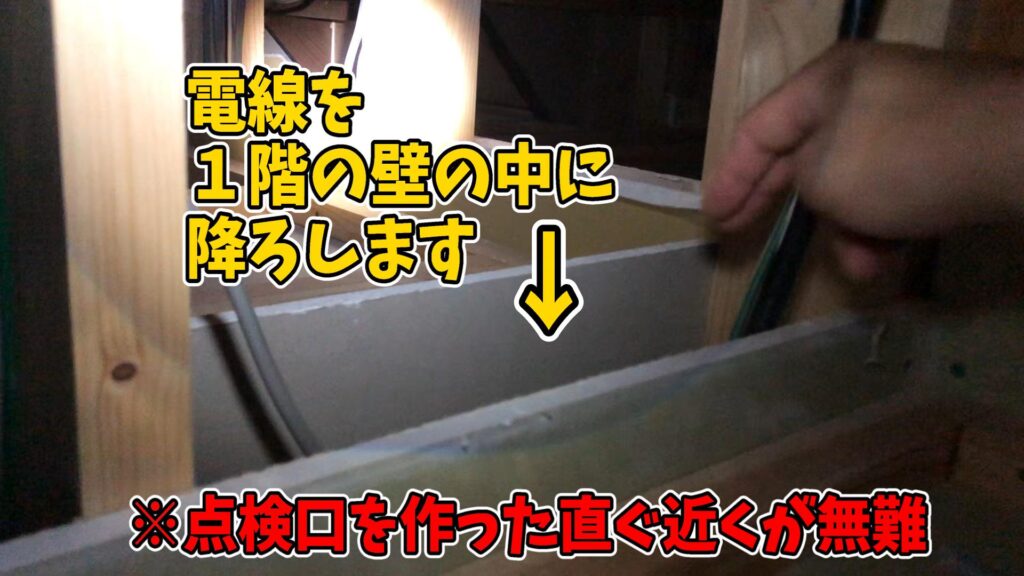 電線を手繰り寄せたら点検口の近くの1階の壁の中に降ろしていきます。
