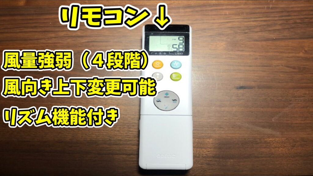 付属のリモコンでは風量の調整・羽の回る方向の変更・リズム機能が付いています。