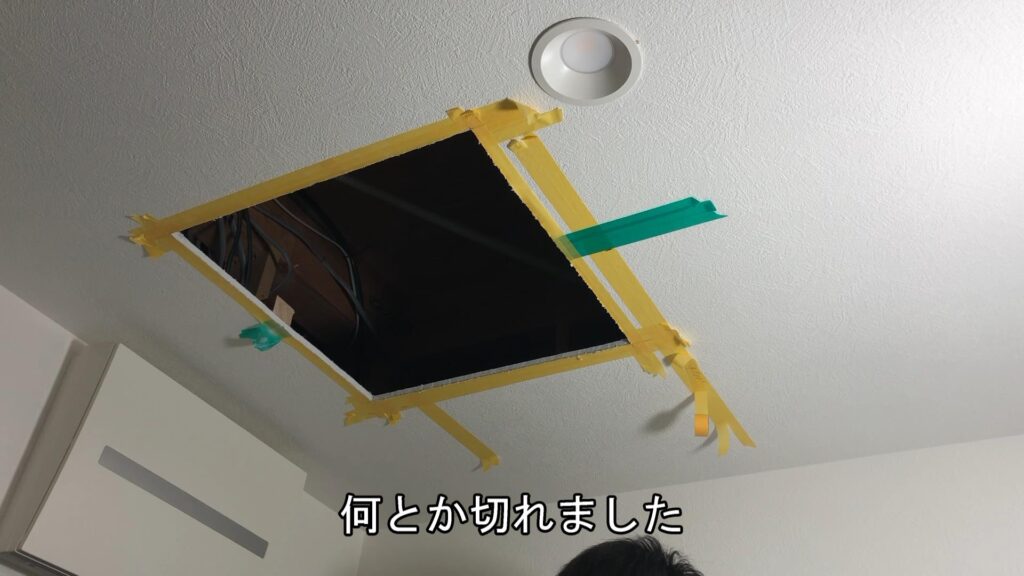 イメージした場所の中心位置と点検口の大きさをテープで印しておきます。