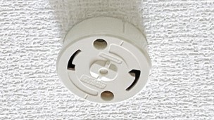 写真のような部品が天井にすでに付いている場合は配線工事は必要ありませんので簡単に取付けが可能です。