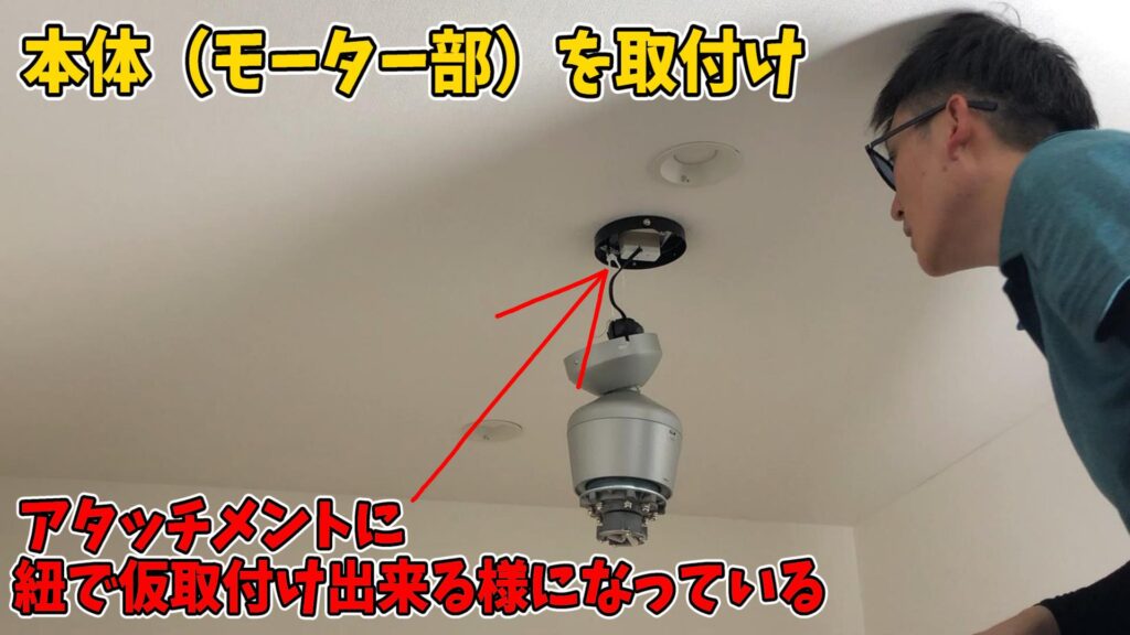 物はファン本体に同封、配線して先ほど付けた下地に強固に取り付けます。