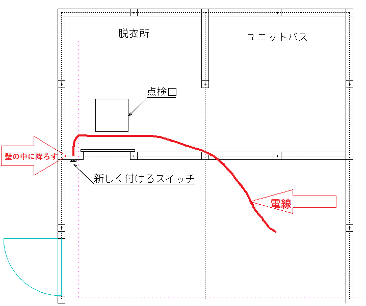 ・点検口・・・メインスイッチを取付ける近くに天井点検口が無い場合は配線する際に必要になります。(2Fの場合は屋根裏に登れれば必要無)