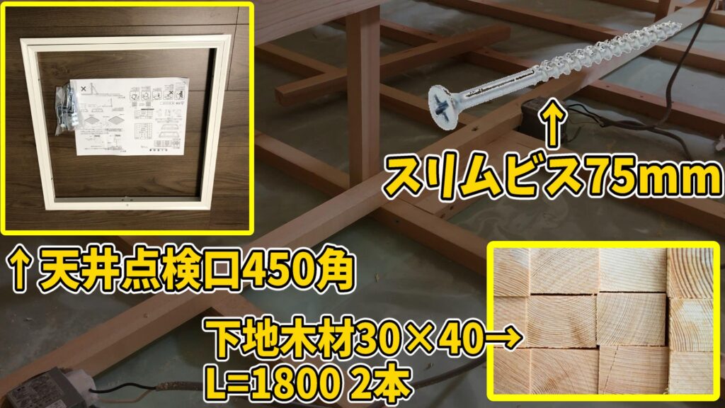 ・下地取付けビス・・・スリムビスは点検口やファンの取付け下地を固定するのに使います。50本あれば良いかな。