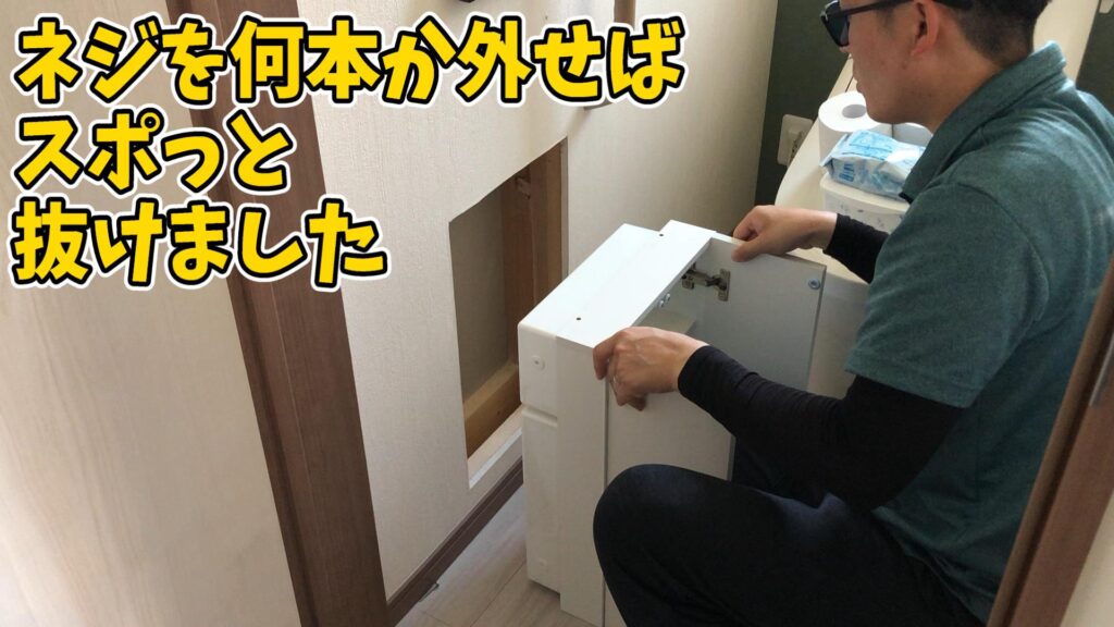 ペーパーホルダーを先に外し、下のボックスもネジを数本抜けば簡単に収納は外れました。