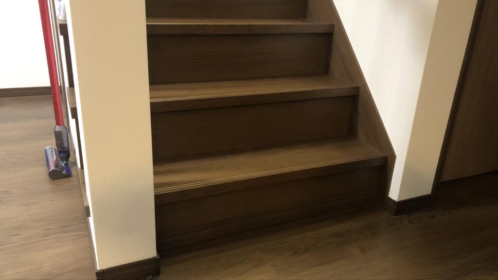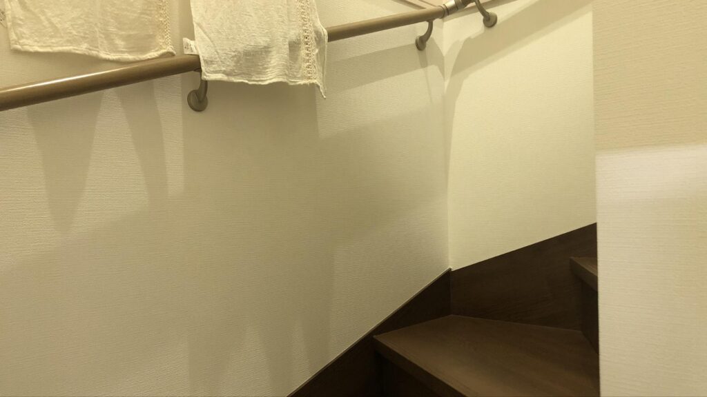 ※腰壁に登って作業するので落ちれば1階の床もしくは階段ですのでかなり慎重に、かつ二人で作業しました。